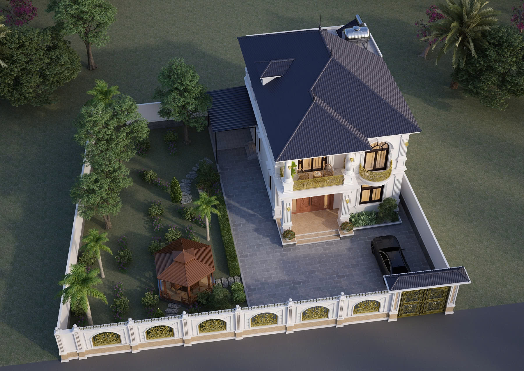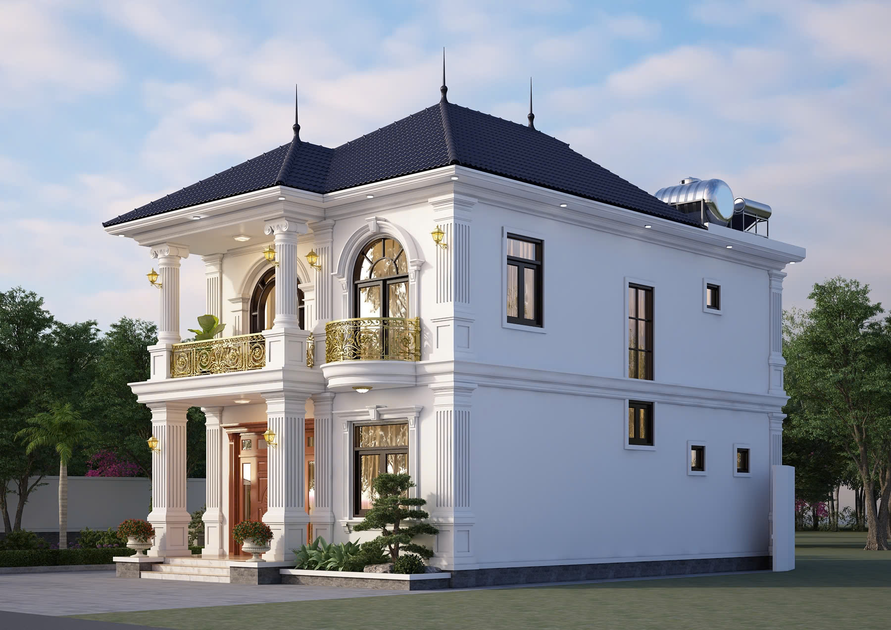 Nhà mái Nhật 2 tầng tân cổ điển là lựa chọn lý tưởng cho những gia đình yêu thích sự sang trọng nhưng vẫn đề cao tính tiện nghi trong sinh hoạt. Công trình nổi bật với hệ mái dốc nhẹ đặc trưng, kết hợp cùng các chi tiết phào chỉ tinh tế và tỷ lệ kiến trúc cân đối, tạo nên tổng thể thanh lịch, bền vững theo thời gian. Không chỉ đẹp ở hình thức, thiết kế còn được tối ưu công năng với không gian sinh hoạt chung rộng rãi ở tầng 1 và khu vực nghỉ ngơi riêng tư ở tầng 2, đáp ứng trọn vẹn nhu cầu sống của gia đình nhiều thế hệ.